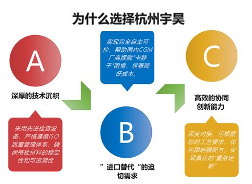 在CGM技术的演进征程中,聚合物材料也是决定系统性能上限的核心之一。杭州宇昊化工科技有限公司依托在高分子材料合成领域的深耕,为CGM研发团队提供优秀的材料设计。我们期待与您携手,将材料的每一次优化,转化为CGM传感器临床性能的每一次跨越式提升。
